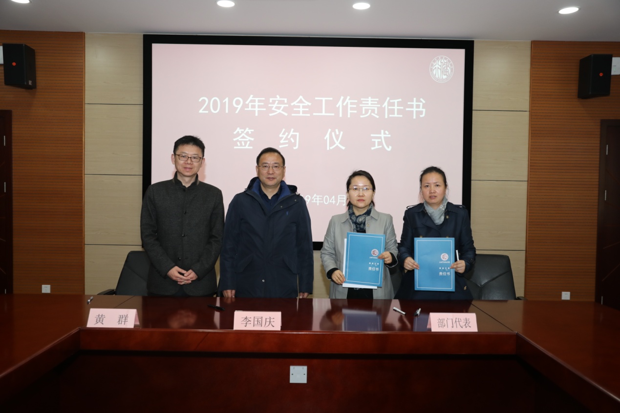 4月1日上午,学院在敏行楼2214举行2019年度部门安全工作责任书签约仪式。学院领导和全体中层干部出席此次签约仪式。会议由党委副书记李越主持。