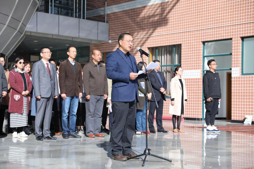 升旗仪式上,师生庄严肃立,面向国旗行注目礼,齐唱国歌。升旗仪式结束后,党委书记李国庆发表了“提高全民国家安全意识,增强全民国家安全责任”的主题讲话,他强调了国家安全教育的重要性和必要性,希望全院师生树立危机忧患意识,保持清醒和冷静的头脑,担当起公民应该担当的责任,增强国家安全责任和意识,筑牢国家安全长城,维护国家的长治久安。