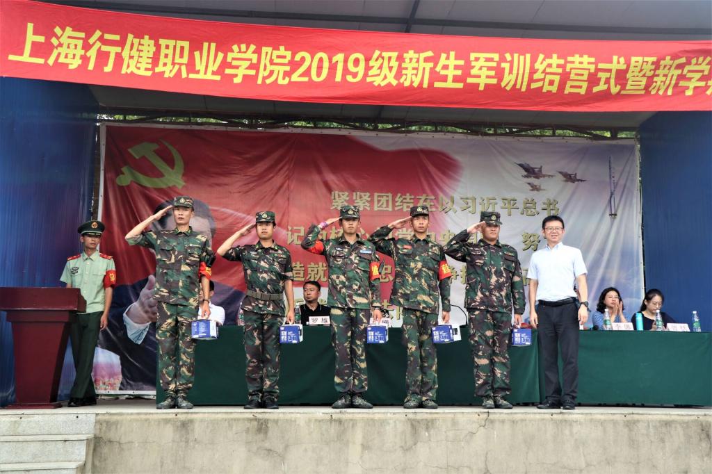 9月6日,学院2019级新生军训结营仪式在奉贤树修教育培训中心举行。学院院长黄群、副院长章卫芳,教务处处长邝姗、学生处处长孙波、艺术系主任罗雄、经管系主任严威、学前系主任李娜、信机系主任王莹、外语系主任曾恬出席活动。结营仪式由奉贤基地总教官张欣主持。