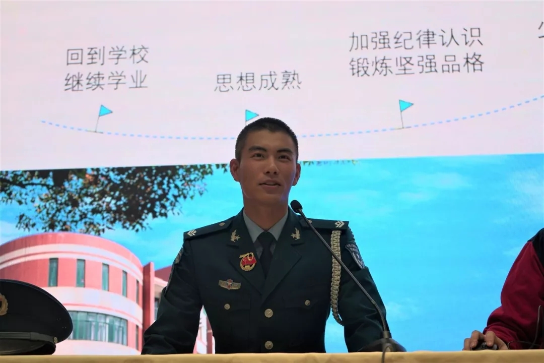 为进一步激励全院青年学子厚植爱国情、坚定强国志、实践报国行,用奋斗书写青春华章,10月29日,学院举办庆祝中华人民共和国成立70周年受阅士兵叶雨豪优秀事迹报告会。身着阅兵服,佩戴70周年阅兵纪念章的叶雨豪端正挺拔、英姿卓立,讲述了他退役后再度热血应征,阅兵村敢于挑战淬筋炼骨,表现优异评上“先进排面”,最终梦圆天安门的国庆大阅兵故事。一幅幅背景照片:破洞的手套、磨坏的军鞋、滴水的衣袖、身上的累累伤痕……见证了新一代军人的坚毅与担当。一段段视频短片:烈日下正步铿锵,刺刀寒光四射、劈枪整齐划一,百人行进如一人……彰显了后备劲旅“召之即来、来之能战、战之必胜”的钢铁意志。受阅士兵叶雨豪的爱国情怀、坚毅品格和自信力量深深打动了在场师生,聆听报告过程中多次响起热烈的掌声。