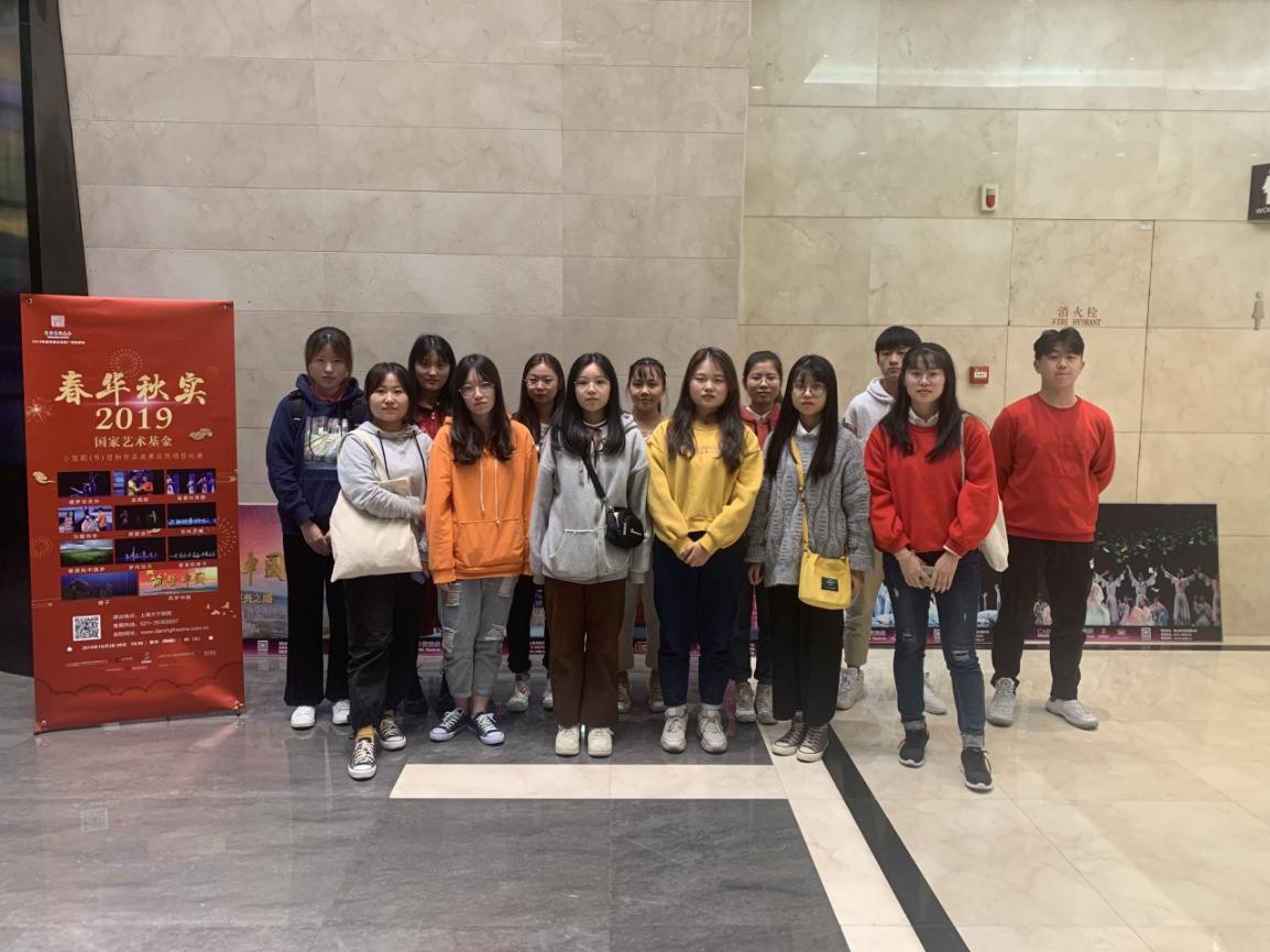 为庆祝中华人民共和国成立70周年,传承与弘扬中华传统文化,近日,团委组织学生参加高雅艺术进校园系列活动,组织我院100名学生前往大宁剧院观看《春华秋实2019——国家艺术基金小型剧(节)目和作品成果运用项目巡演》。