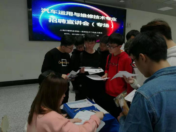 11月1日下午, 信机系汽车运用与维修技术专业在敏行楼2113举行专场招聘宣讲会。上海永达汽车股份公司、上海车享家汽车科技服务有限公司以及新奇特车业服务股份有限公司三家企业来院进行宣讲招聘。