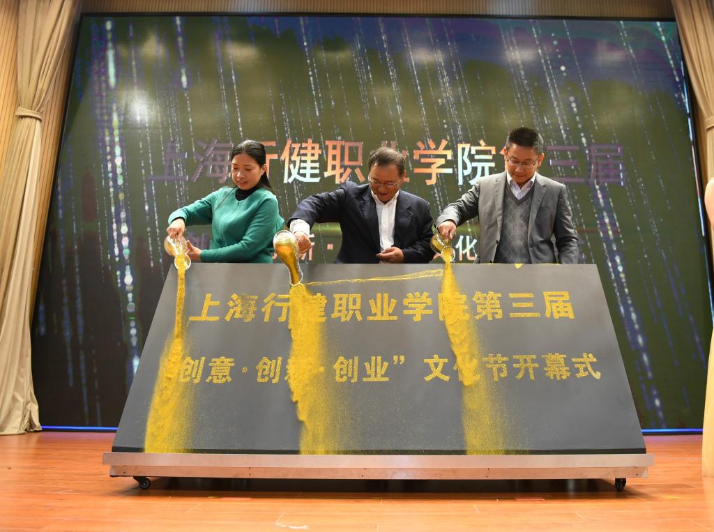 11月20日,上海行健职业学院第三届“创意·创新·创业”文化节开幕式在明德楼1109举行。学院党委书记李国庆、党委副书记李越、副院长章卫芳,各学系、创兆园及相关部门的领导、老师参加。