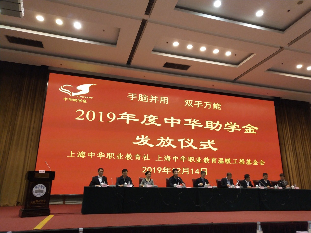 12月14日,2019年度中华助学金发放仪式在市科学会堂举行,在学院学生处安排下,商务外语系学生事务秘书王兴梅老师带领我院4位受助学生参加了发放仪式。
