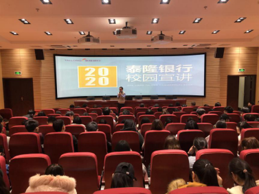 宣讲会上,泰隆银行人力资源张岩总经理向同学们详细介绍了浙江泰隆商业银行的基本情况。同时,张岩总经理就泰隆银行订单班的课程设置及人才培养模式进行了详细的介绍,并对我校培养的毕业生的业务能力、忠诚度、敬业精神和吃苦耐劳的品质给予了高度肯定,并对此次校企合作订单班充满了期待。宣讲会上,同学们热情高涨,积极踊跃报名。目前,经管系多名同学先后在泰隆银行正式实习、就职,他们的工作表现得到了泰隆银行的高度肯定。学员代表方志远和与会人员交流了在泰隆银行的工作和学习体会。