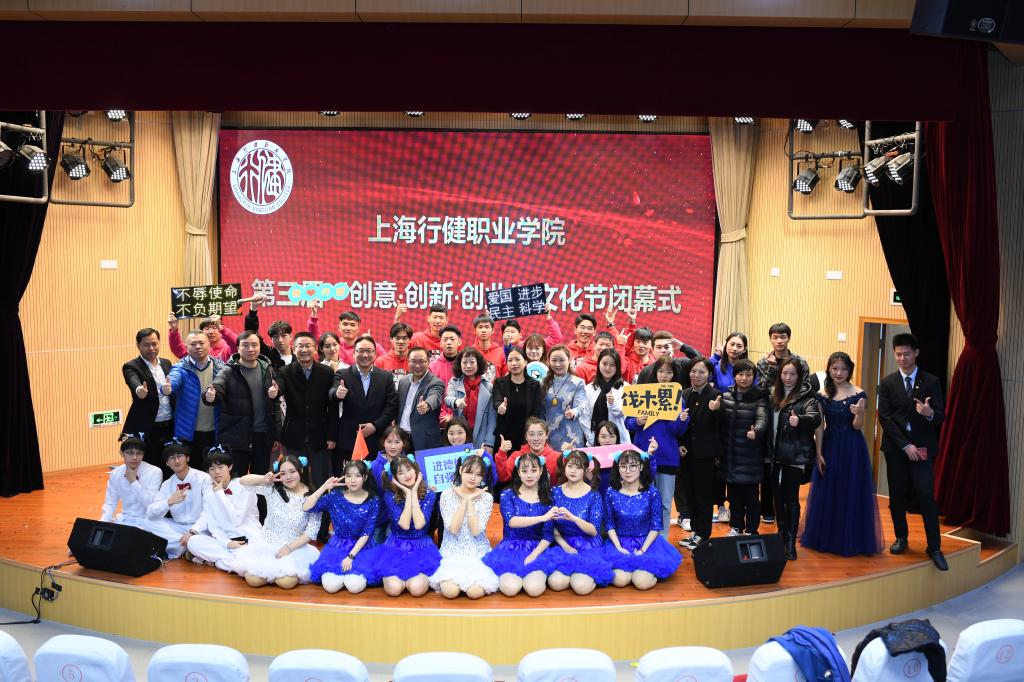 12月24日,学院在明德楼1109举行上海行健职业学院第三届“创意·创新·创业”文化节闭幕式。静安区人社局副局长汤虹,彭浦镇副镇长丁晓青,市北高新集团副总裁周晓芳,聚能湾总经理王健,尊尼(上海)管理咨询有限公司总经理马漫春、企业家代表市级创业导师顾晨洁老师,上海群益职业技术学校的师生们以及学院党委书记李国庆、党委副书记李越、副院长章卫芳,各学系、相关部门的领导及学院师生参加闭幕式。