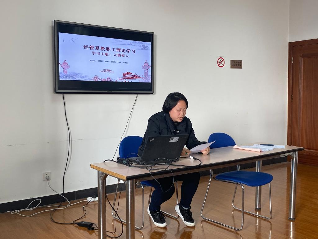 12月27日,经管系以“立德树人”为主题组织教职工召开专题理论学习会。会议由系党支部书记孙天慧主持,系主任严威及经管系全体教职工参会。