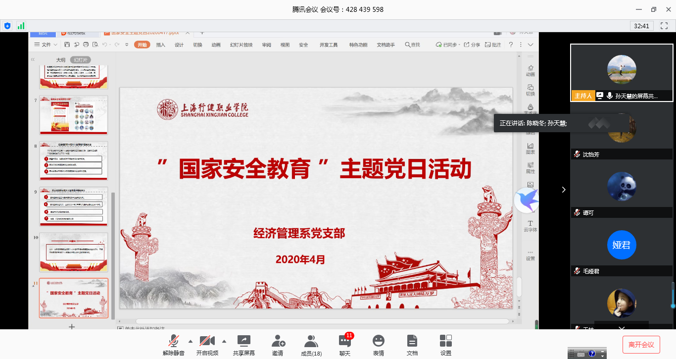 今年4月15日是第五个全民国家安全教育日,为深入学习理解习近平总书记提出的“总体国家安全观”,提高全员维护国家安全的法律意识,进一步树立全员“政治责任”意识。经管系党支部开展“国家安全教育”网上主题党日活动,此次活动围绕“四个一”的主线展开: