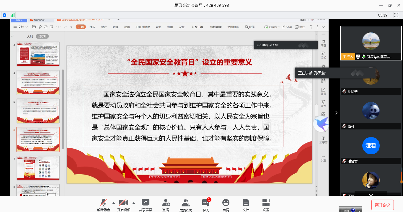 三是组织了一场讨论交流。主题活动中,陈晓冬、李洁、沈怡芳、刘秋珍等党员教师立足工作岗位,围绕活动主题深入讨论,纷纷表示,做为一名高校工作者,要提升政治站位,把国家安全工作放到更重要的位置,加强相关法律法规的学习研讨,增强辨别是非和预警能力,充分认清国家安全形势,提升国家安全意识,切实把做好国家安全工作提高到对党的教育事业忠诚的高度上来。