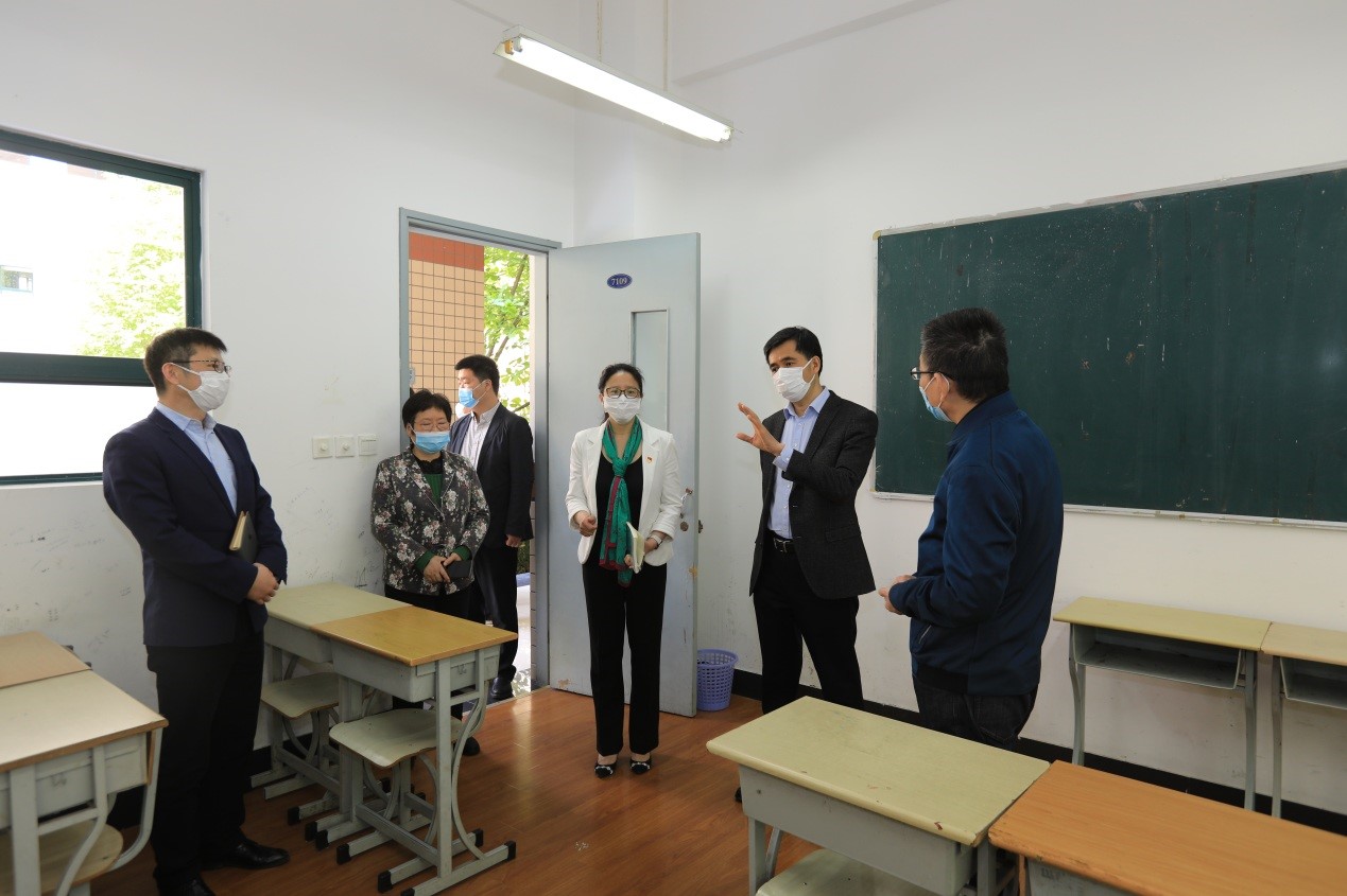 4月24日上午,上海市教卫工作党委副书记滕建勇、市教卫工作党委组干处副处长王庆宇、市教委后保处副处长欧阳世泉一行,来我院实地调研新冠肺炎疫情防控和开学准备工作。学院党委书记沈燕华、院长黄群、党委副书记李越、副院长章卫芳陪同调研,介绍了我院各项开学准备工作。静安区教育局副局长毛炜、成教科科长陈永华,介绍了区教育局有关工作措施。学院防疫工作领导小组主要成员参加实地调研。