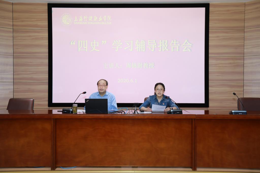 6月1日,学院举行“四史”学习教育首场学习报告暨党委中心组(扩大)学习会,专题开展“新中国史”学习。邀请上海马克思主义研究会专家委员会副主任、上海市中国特色社会主义理论体系研究中心研究员、市委“四史”专家宣讲团成员周锦尉作“新中国史回溯与中国式经济体制的建立与发展”专题辅导报告。党委书记沈燕华主持并讲话。校级、中层干部出席。