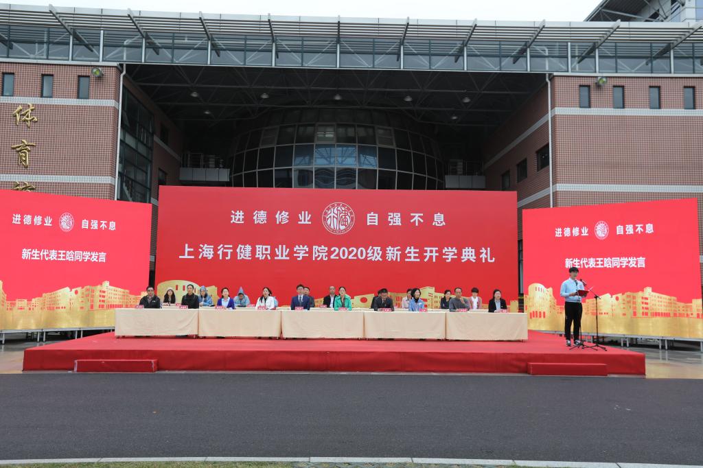 在校徽佩戴仪式上,主席台领导为学院各专业代表佩戴校徽,期望新生们要时刻铭记“进德修业 自强不息”校训,内化于心,外化于行,争当行健精神的传人。