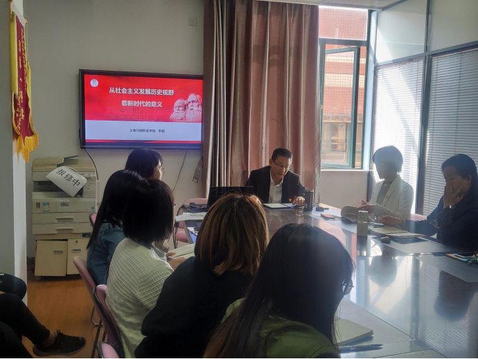 会上,学院党委副书记李越以“从社会主义发展历史视野看新时代的意义”为主题,分为三个部分进行阐述:第一、世界社会主义在曲折发展中凝炼真理共识。李越副书记为大家详细阐述了社会主义发展的“十个难忘瞬间”,社会主义五百年的“六个阶段”以及社会主体现象发展的历史逻辑,并指出我们在实践中对社会主义的解读;第二、中国道路探索在借鉴反思中突破固有模式。李副书记指出,中国道路探索体现了理论逻辑与历史逻辑的有机结合,展现了世界体制与中国经验的互动融合以及实现了光荣传统与时代特征的高度契合;第三、新时代中国特色社会主义的伟大意义,经过长期努力,中国特色社会主义进入了新的时代,这是我国发展新的历史方位。同时,我们要清醒认识中国特色社会主义的新起点;着力解决中国特色社会主义的新问题;科学谋划中国特色社会主义的新布局;努力破解世界社会主义发展的实践难题。不忘初心,继续前行。