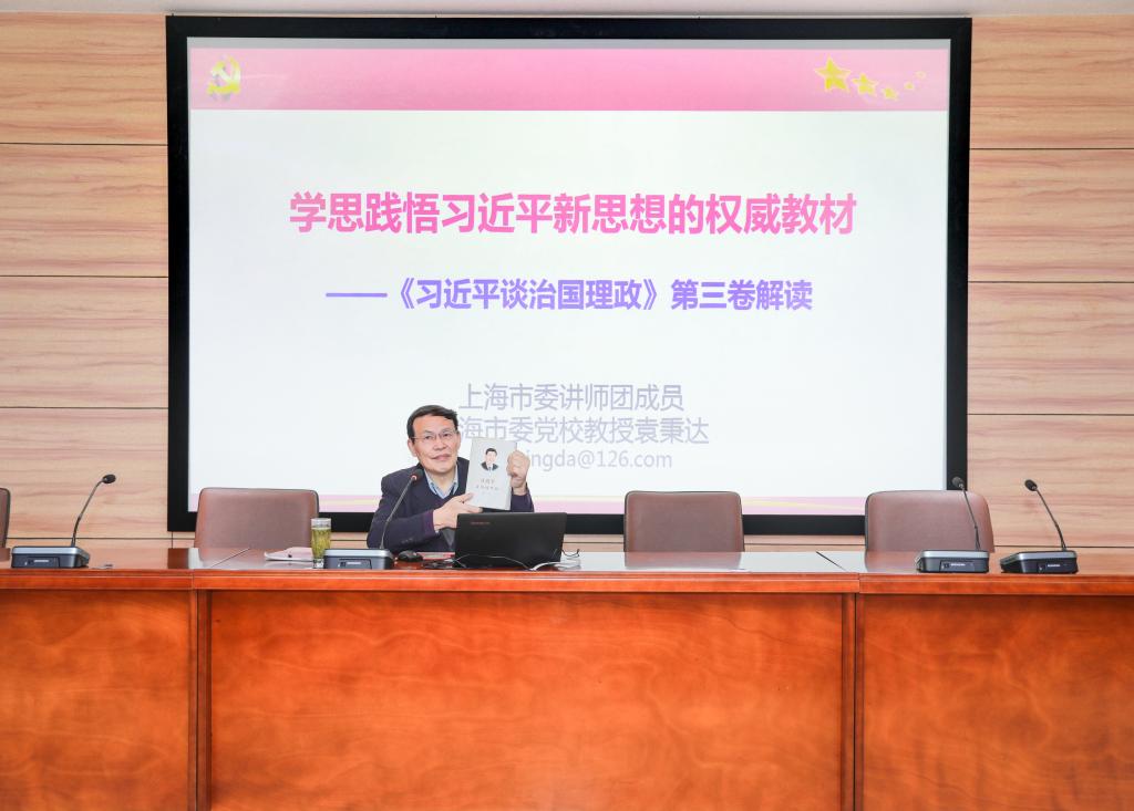 11月9日,学院党委中心组在敏行楼2213举行《习近平谈治国理政》第三卷学习辅导报告会。上海市委讲师团成员、上海市委党校马克思主义学院教授袁秉达应邀作“学思践悟习近平新思想的权威教材——《习近平谈治国理政》第三卷解读”报告。党委书记沈燕华主持报告会。校级、中层干部出席。
