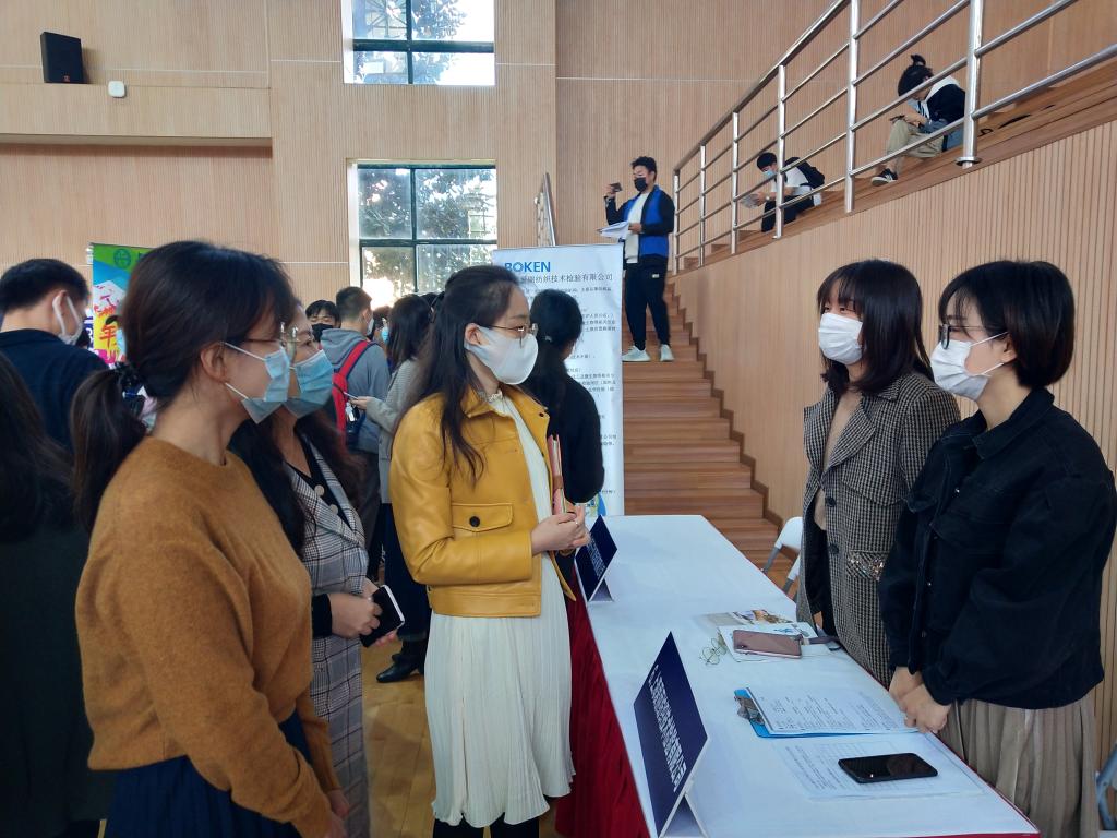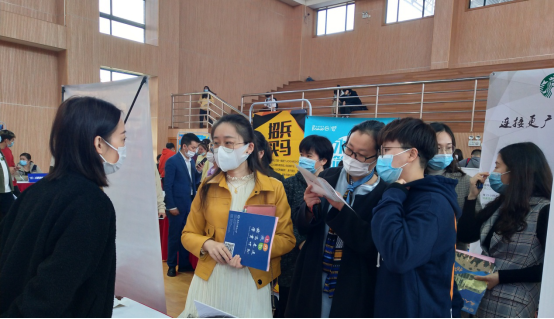 以本次校园招聘会为契机,系主任、书记和专业教师重点与上海顶尖国际物流股份有限公司、上海吉的堡教育有限公司、上海乐宁教育、上海爱丽纺织技术部检验有限公司等校企合作单位进行了面对面的沟通交流,关心招聘情况,了解当前疫情形势下企业人才需求的变化。同时还和企业招聘代表外语系2020届应用法语专业毕业生王天紫进行了亲切的交谈,了解其工作情况。