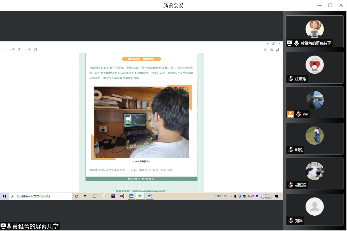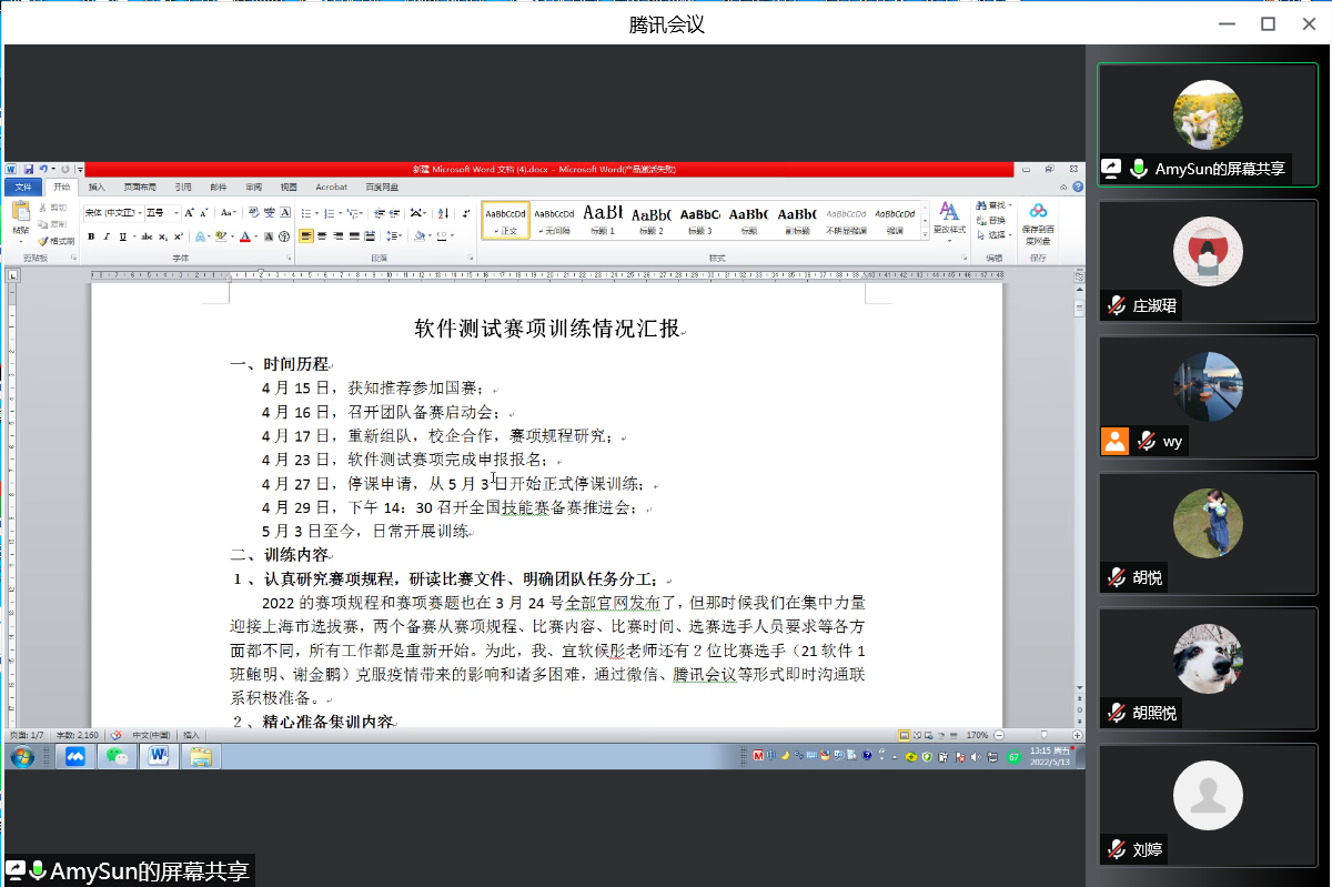 最后,王莹主任总结指出,信机系各赛项备赛师生不怕苦、不畏难,积极沟通,团队齐心,积极开展线上备赛的情况有目共睹。希望通过本次会议,各赛项负责老师进一步明确下一阶段的备赛思路和方法,齐心协力、全力以赴,争取在国赛中取得优异的成绩。(信机系)