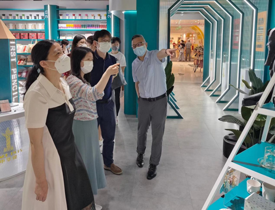 交流会后,黄院长一行还前往中铅公司最新活动现场“文明变铅”中华文具&大英博物馆联名款快闪店进行参观。此次联名快闪活动帮助中铅公司旗下“中华牌”文具打造年轻化的品牌新形象和新体验,是中铅公司探索创新发展之路,是加速提升老字号品牌升级,助力上海四大品牌建设的重要举措。学院有55名经管系学生以暑期社会实践的方式全程参与此次联名快闪活动的社交电商整合营销工作,在实践中淬炼专业技能。