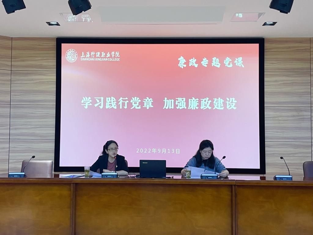会上,沈燕华书记以《学习践行党章 加强廉政建设》为主题为基层党支部委员上了一堂廉政专题党课。主要包括三个方面:第一,党章百年,初心不改。2022年是中国共产党历史上首部正式党章百年,以史为鉴,可以知兴替,了解党章发展历史,不忘初心使命。第二,强调纪律,从严治党。党章注重加强党的纪律建设,使党有了管党治党的根本大法。百年来,党勇于自我革命的鲜明品格始终不改,纪律严明的光荣传统一以贯之。第三,学习践行,永葆清廉。全体党员干部要系统学习党章党规,要“讲政治,有信念”、“讲规矩,有纪律”、“讲奉献,有作为”,在工作生活中自觉践行党章要求,永葆清廉作风。