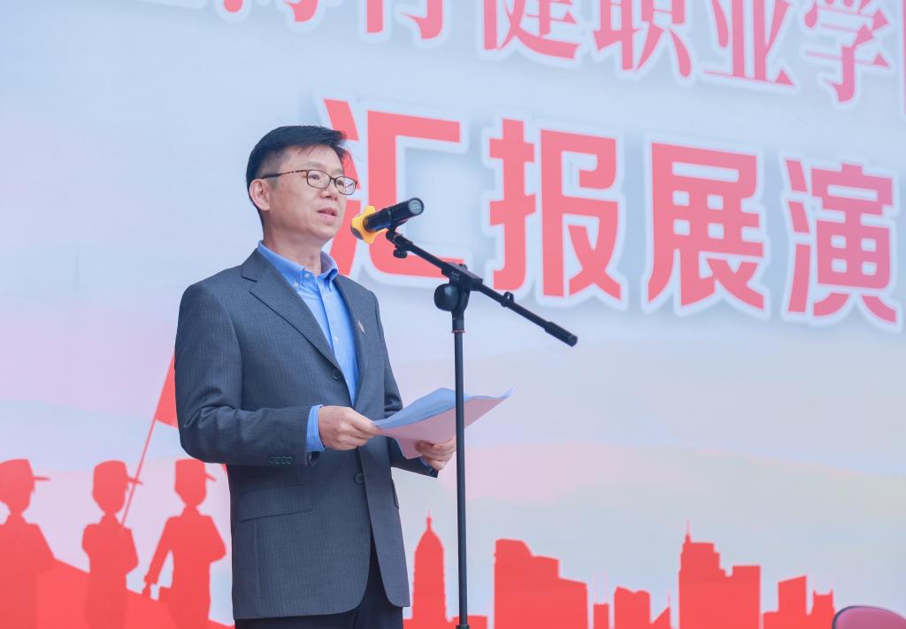 活动最后,黄群院长作开学致辞。黄群院长对同学们刻苦训练的精神给予充分肯定,对教官们和辅导员老师们的辛勤工作表示衷心感谢。他希望同学们经过本次军事训练,充分认识到国防教育的重要性,将军训中所锤炼出的吃苦耐劳、坚韧不拔的精神不折不扣地落实到日后的学习生活中。黄院长指出,职业教育作为国民教育体系和人力资源开发的重要组成部分,当前职业教育高质量发展迎来新机遇,同学们赶上了职业教育发展的大好时机。在学校的培养下,每一位同学都应关注国家需要、关注社会需要,树立为中华民族伟大复兴而学习的远大志向,脚踏实地,练就真才实学,把学院“进取、奋斗、实干、创新”的行健精神发扬光大,一步步朝着自己的目标迈进,努力成才、不负韶华。(学生处)