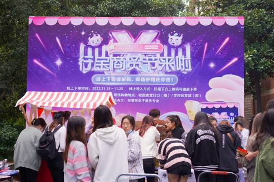 启动仪式于10点准时开始,学院副院长章卫芳、宝尊电商总监茅春燕、经管系副主任孙天慧、学系党支部书记谭可列席活动,数字商贸群主任钟一杰主持本次仪式。章卫芳副院长对本次商贸节活动给予了肯定与鼓励,认为线上线下的形式非常新颖,寓教于行,实现了教学与实践的融通,契合学院技能型人才培养的宗旨。茅春燕总监也对于校企双方长远合作抱有无限期许,愿同学在实战活动中积累更多的经验。商贸节活动一直持续到下午4点,现场人头攒动,气氛活跃。各小组“战果”丰硕,各小组同学运用课程所学技能运用,实践线上线下全渠道运营和营销流程,部分小组销售火爆,产品售罄。当天活动结束后,行宝商贸节16个小队共销售商品数量1570件,完成GMV44000余元,圆满实现了活动目标。