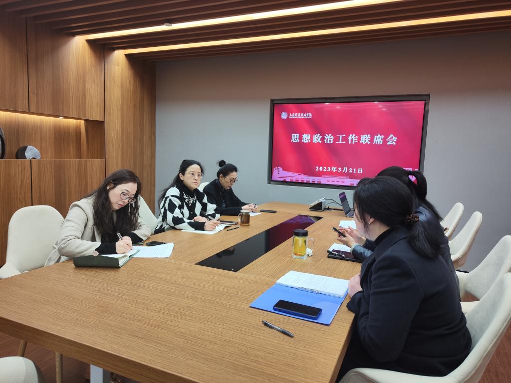 3月21日上午,学校召开思想政治工作联席会,研究部署我校2023年思想政治工作。校党委书记沈燕华出席会议,工会、党委办公室、宣传部、思政部和团委等部门负责人参会。