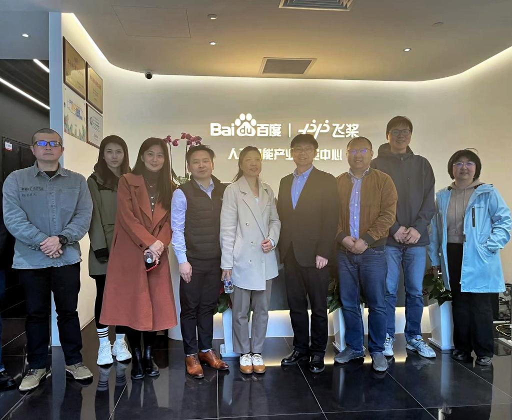 3月31日下午,2023年度数字经济产教融合促进平台工作规划交流研讨会在位于张江人工智能岛的百度人工智能产业园举行。此次会议是在我校发起的“数字经济产教融合平台”成立后的首次分享活动。我校校长黄群、副校长章卫芳率领经济管理系副主任孙天慧、经济管理系书记谭可、数字商贸专业群主任钟一杰、骨干教师徐烜等与百度飞桨人工智能产业赋能中心华东区域运营负责人魏宗凯、企业生态负责人梅俊杰、智能云中区生态组负责人闻斌,上海市计算机行业协会教培专委会常务副秘书长鲍志林、上海斌皇信息科技有限公司总经理王勇强代表院校、企业、行业共同出席活动。三方以“AI环境下的数字经济产教融合”为主题展开了交流,并参观了百度飞桨AI创新中心。