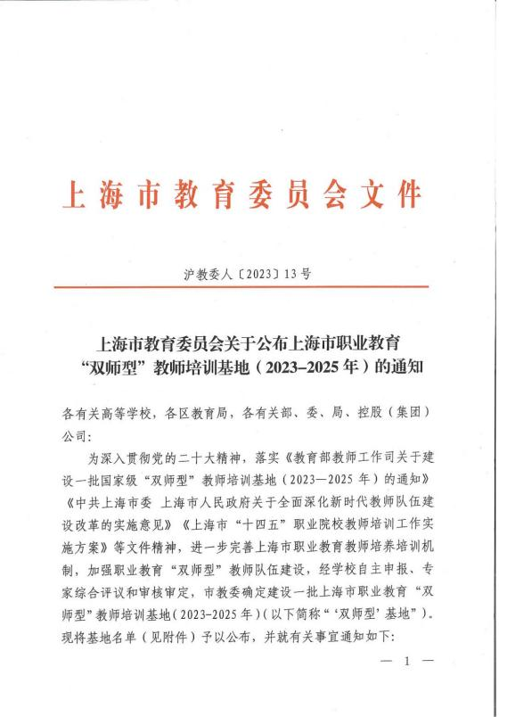 为深入贯彻党的二十大精神,落实《教育部教师工作司关于建设一批国家级“双师型”教师培训基地(2023-2025年)的通知》《中共上海市委上海市人民政府关于全面深化新时代教师队伍建设改革的实施意见》《上海市“十四五”职业院校教师培训工作实施方案》等文件精神,进一步完善上海市职业教育教师培养培训机制,加强职业教育高素质“双师型”教师队伍建设,经学前教育系婴幼儿托育服务与管理专业牵头、学校自主申报、专家综合评议和审核审定,我校获批上海市职业教育健康管理与促进类“双师型”教师培训基地(2023-2025年)。