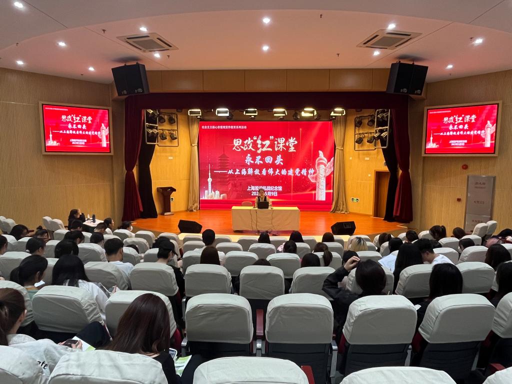 5月9日,思政部邀请学校思政教育实践基地上海淞沪抗战纪念馆宣传教育部主任徐沁来我校为师生做讲座。徐主任是上海“建筑可阅读”宣传大使、上海市青年讲师团讲师,被评为上海市基层理论宣讲先进个人、宝山区最美退役军人。报告的主题是“永不回头——从上海解放看建党精神”,思政部全体老师及学生代表现场聆听讲座。
