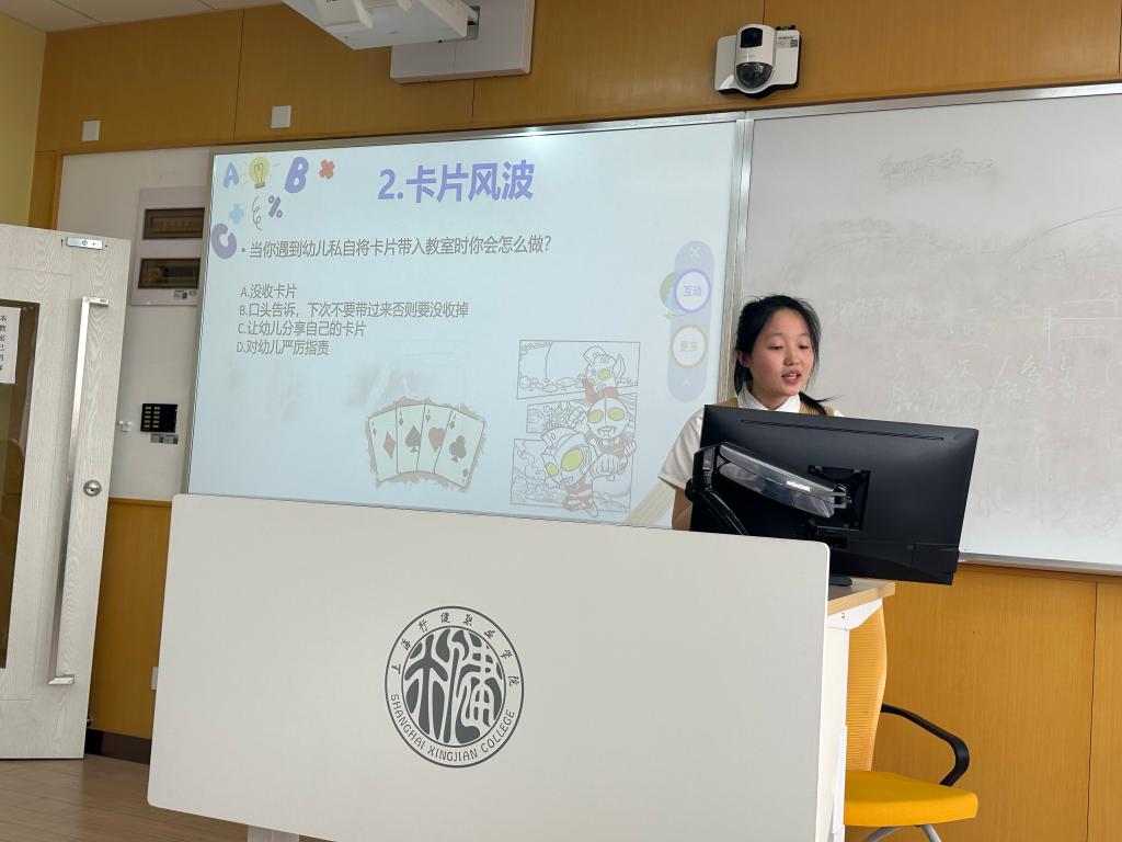 5月12日下午,在学前系专业主任申海燕老师的组织下,开展了本次教育实践活动的展示,27位学生参加了展示活动,学系王烨芳、单敏月、黄文珺、凡丽、李阿蕾等骨干教师担任了活动评委,部分学生参加了现场观摩,活动效果较好,汇报学生的表现赢得了师生的一致好评。