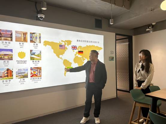 接着,上海金拱门食品有限公司领导力学院院长和人力资源经理分别对麦当劳的企业文化、行业背景、人才策略、校企合作以及市场发展等进行一一介绍,上海金拱门食品有限公司上海市场高级总经理罗伟亲自带领与会教师们一同来到魔方大楼进行现场参观,介绍了麦当劳企业的发展史、新员工们的培训项目以及招募流程等。