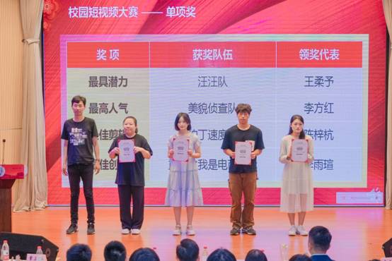 活动还举行了“竞技展风采,筑梦创青春”数字商贸专业群技能活动颁奖典礼。孙天慧副主任以短视频的形式,与在场嘉宾、师生代表分享了数字商贸专业群学子在“双十一”电商运营实践、支持疫情期间中小企业复产复工、首届校园短视频大赛、行宝商贸节四项代表性活动的精彩表现。与会领导共同为获奖选手颁奖。