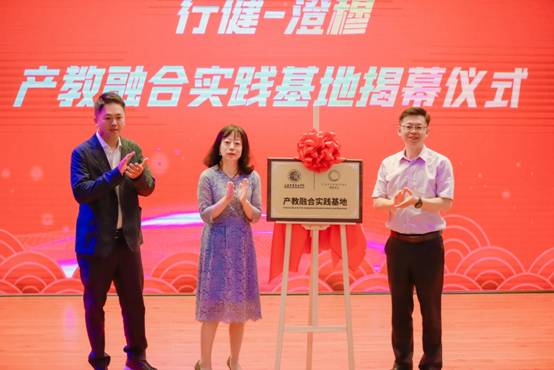 上海市北高新集团副总裁周晓芳、上海行健职业学院校长黄群、上海澄穆实业发展有限公司董事长朱才彬共同为“行健-澄穆”产教融合实践基地揭牌。周晓芳副总裁、黄群校长共同为朱才彬先生颁发特聘专家荣誉证书。