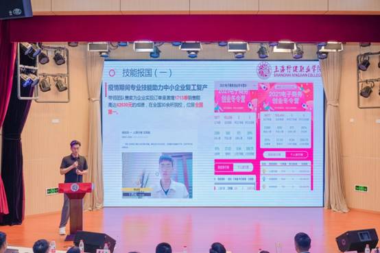 2022上海大学生年度人物、宝钢教育奖获得者,20级电子商务专业王照赢同学和新疆喀什职业技术学院学生艾米拉姑丽·木萨作为获奖学生代表,分享了他们参加数字商贸专业群技能活动的感悟。