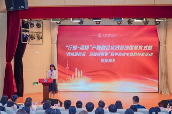 活动最后,上海行健职业学院校长黄群致词。他代表学校再次向出席活动的各位嘉宾、各方代表表示感谢,向获奖学生表示祝贺。他希望产教融合实践基地本着“服务广大学生、服务学校发展、服务社会需要”的宗旨,以产教融合、校企合作为主要途径,凝聚和传承行健精神,为学校的建设发展凝心聚力,为广大学生的不断进步提供精神动力。他强调,举办技能活动和竞赛将作为学校一项重点工作常抓不懈,抓细、抓小、抓实,以此形成“以赛促改、以赛促教、以赛促学”的良好氛围,并预祝数字商贸专业群在即将代表上海出征的全国高职院校学生技能大赛中取得优异成绩。