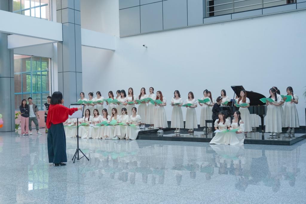 艺术团专项汇报在合唱团悠扬的歌声正式拉开本次活动的帷幕。合唱社的师生带来了“学堂乐歌”“古典诗词”“时代新声”三个系列,用歌词寄托情感,用合唱传递力量,感受时代脉搏,凝聚奋进力量。