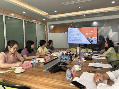 在此次研讨活动中,李智敏副总裁首先对外语系教师一行的到来表示热烈欢迎。人事总监王婉向老师们介绍了与睿的覆盖业务、合作资源、岗位需求、晋升机制、公司文化等,并和老师们交流了外语系学生在与睿的实习工作情况和收获。随后,双方就订单班的人才培养需求、产教融合、产业学院等合作形式展开热烈讨论,双方一致认为校企要加强紧密联系,持续深入开展校企合作,落实落细合作内容。