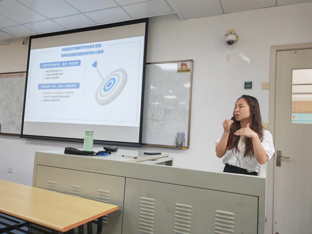 会上,儿童发展与教育学院院长李娜做“上海市托幼一体化高水平专业群建设理念和具体路径”专题报告,学前教育专业主任申海燕和婴托专业主任潘太健分别介绍了在托幼一体化背景下专业建设的成果与经验,骨干教师盛婴围绕“职业院校师生教学技能比赛指导”专题和与会老师进行了深入交流。