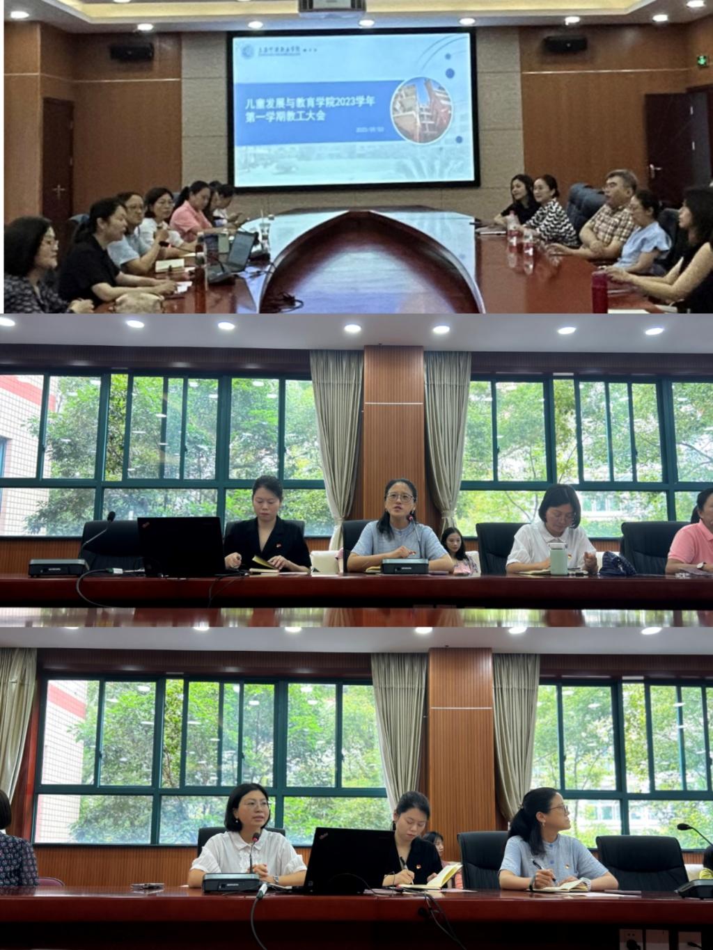 9月3日上午,儿童发展与教育学院召开2023学年第一学期教工大会,会议由教育学院党支部书记毛娅君主持,学院全体老师参加,学校党委书记沈燕华出席会议并讲话。
