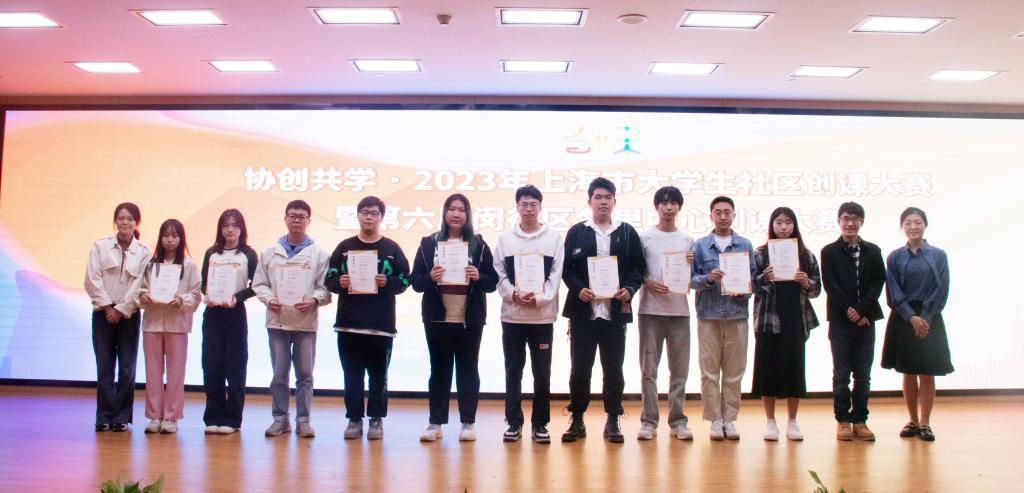 自六月启动以来,我校非常重视这项工作,学生在专业老师指导下组成了16支参赛队伍,最终我校有12支参赛队45名学生获得了本次“协创共学·2023年上海市大学生社区创课大赛”的“潜力创课奖”。