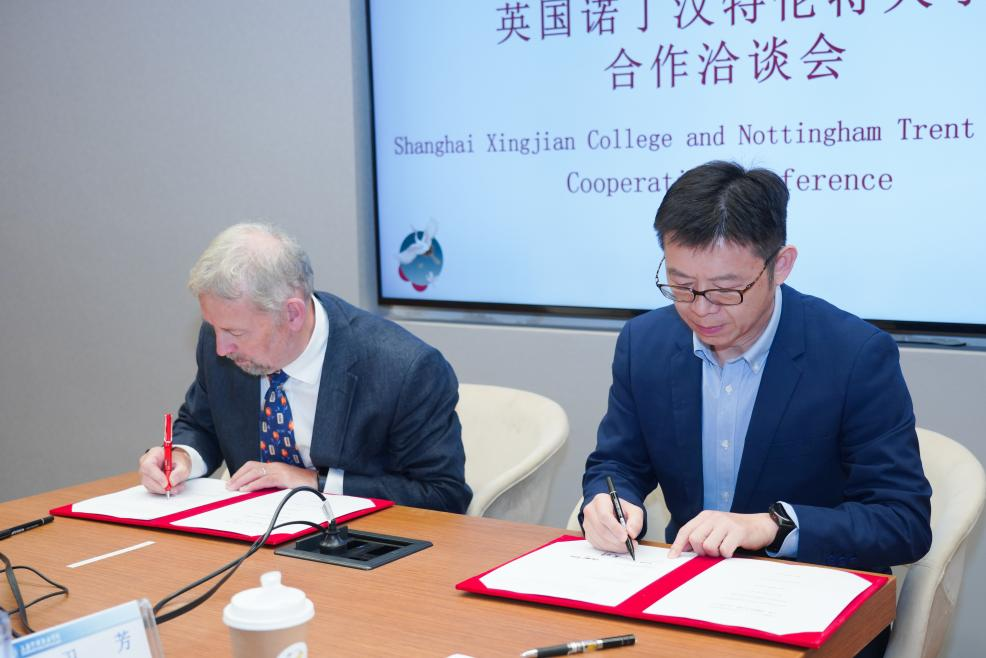 在友好的气氛下,黄群和Cillian Ryan分别代表上海行健职业学院和诺丁汉特伦特大学签署了进阶课程协议,并交换礼物。(教育学院)