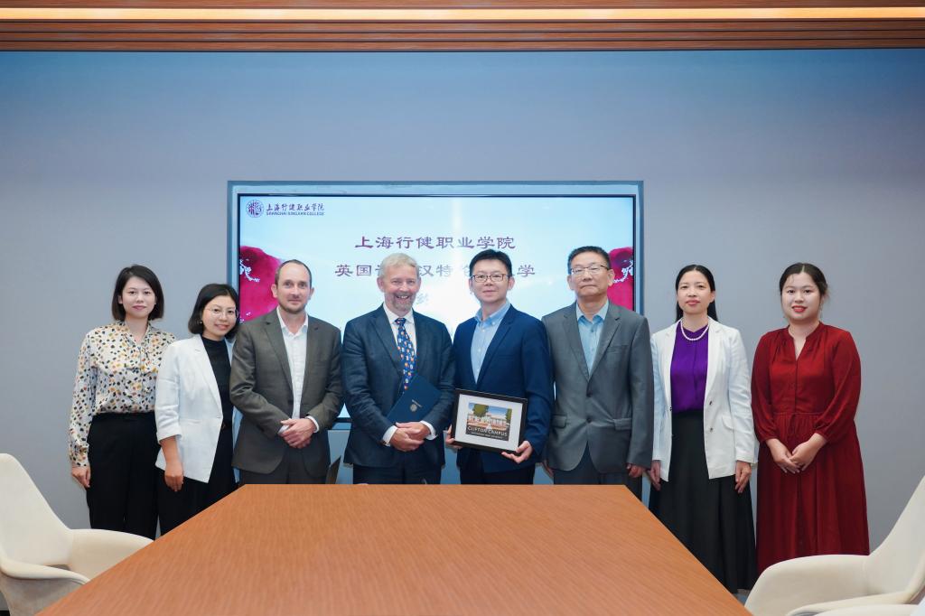 在友好的气氛下,黄群和Cillian Ryan分别代表上海行健职业学院和诺丁汉特伦特大学签署了进阶课程协议,并交换礼物。(教育学院)