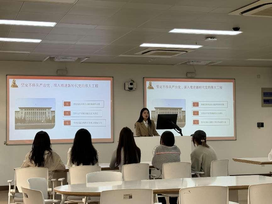 儿童发展与教育学院高伟婕、闫博分别以《学习党的二十大》、《践行志愿精神,贡献青春力量》为主题精心设计班会内容,充分利用PPT、现场互动等教学手段,多角度、多形式地展示班会教育思路、方法和效果,充分展现了我校辅导员扎实的专业素养和良好的精神风貌。