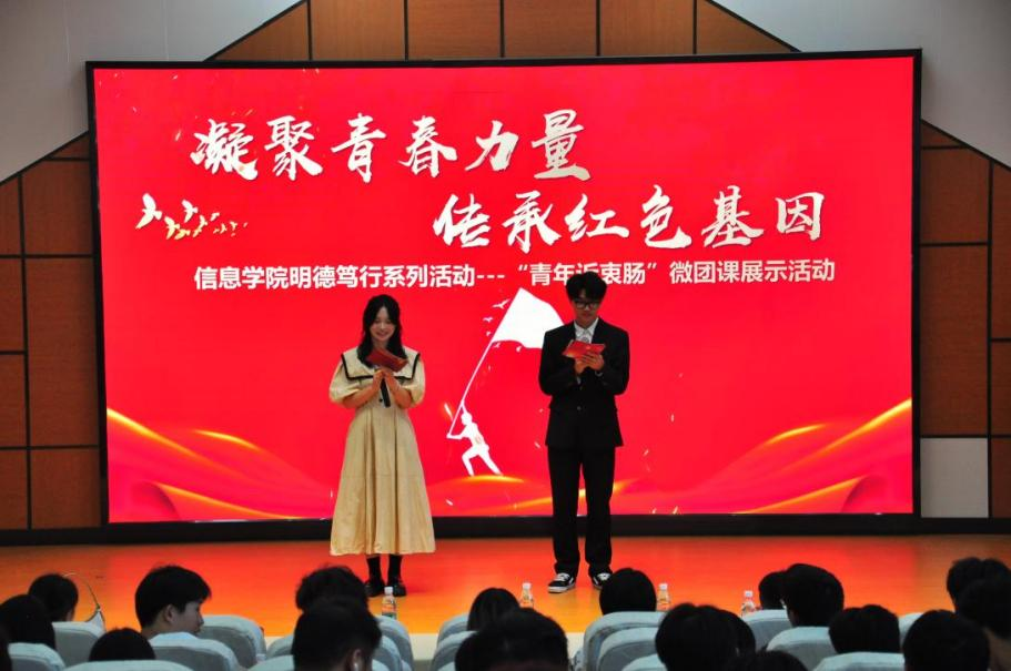 为深入学习贯彻习近平新时代中国特色社会主义思想,深入学习贯彻党的二十大精神,全面落实立德树人根本任务,培育和践行社会主义核心价值观,11月3日,信息学院明德笃行系列活动——“青年诉衷肠”微团课展示活动顺利举办。信息学院党支部书记王永,学校党委宣传部精神文明办主管邢艺,信息学院辅导员卜秀新、蔡华乔、阙隆磊等老师共同出席了此次活动。