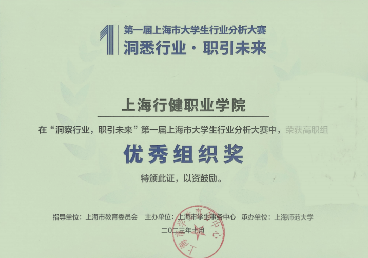 上海行健职业学院第一届大学生行业分析大赛校内选拔赛获奖名单