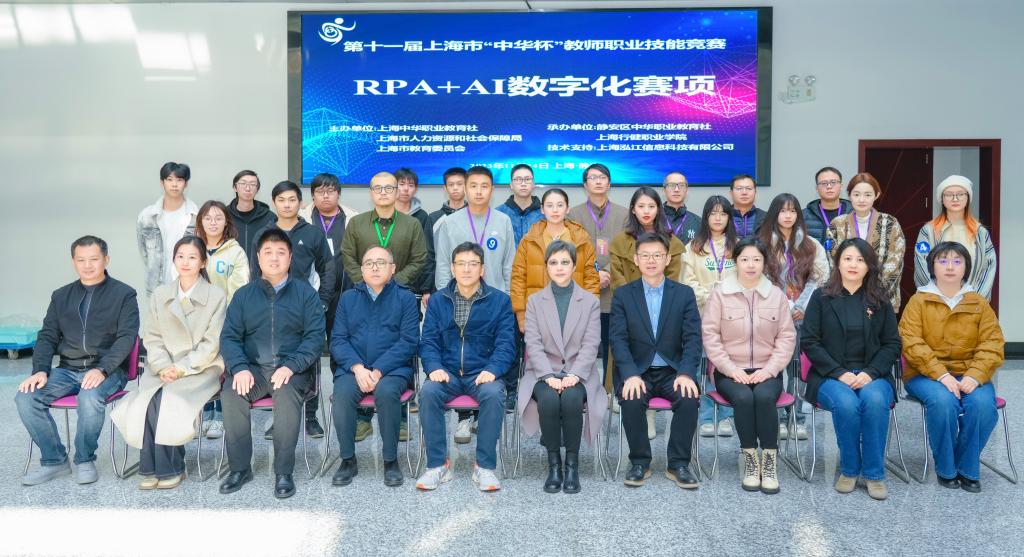 11月24日,第十一届上海市“中华杯”教师职业技能竞赛RPA+AI赛项在上海行健职业学院成功举办。本次大赛由上海中华职业教育社、上海市人力资源和社会保障局、上海市教育委员会主办,静安区中华职业教育社、上海行健职业学院承办,上海泓江信息科技有限公司作为技术单位支持本次大赛。本赛项秉承中华职业教育社优良传统,大力弘扬工匠精神,坚持“面向社会、面向青年、面向技能”的竞赛宗旨,为具有数智化的技能型人才搭建展示技艺的平台,提供切磋交流的载体,营造崇尚技能、匠心筑梦的良好社会氛围。
