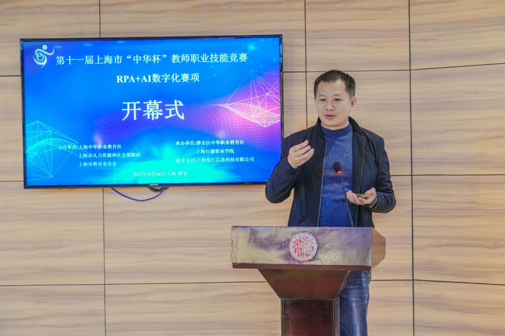 11月24日,第十一届上海市“中华杯”教师职业技能竞赛RPA+AI赛项在上海行健职业学院成功举办。本次大赛由上海中华职业教育社、上海市人力资源和社会保障局、上海市教育委员会主办,静安区中华职业教育社、上海行健职业学院承办,上海泓江信息科技有限公司作为技术单位支持本次大赛。本赛项秉承中华职业教育社优良传统,大力弘扬工匠精神,坚持“面向社会、面向青年、面向技能”的竞赛宗旨,为具有数智化的技能型人才搭建展示技艺的平台,提供切磋交流的载体,营造崇尚技能、匠心筑梦的良好社会氛围。