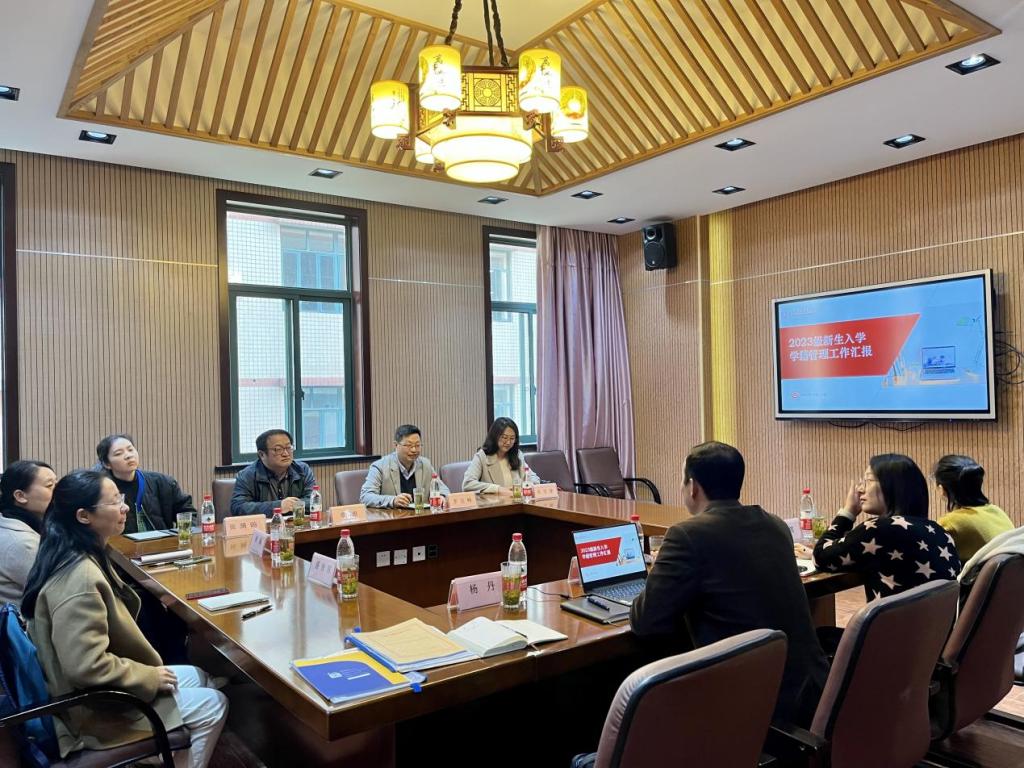 学生处处长孙波对学生事务中心领导、专家一行表示热烈欢迎,并对学生事务中心长期以来对我校学籍工作的指导和支持表示感谢。孙波处长从学校学籍管理制度建设、组织保障情况、新生入学资格审查等方面介绍了学校学籍学历管理工作的相关情况,汇报了2023年秋季新生入学资格审查工作的具体流程、审查结果。汇报后,围绕学籍管理工作在工作开展中遇到的问题和难点,学校相关人员与调研组专家展开了积极讨论。