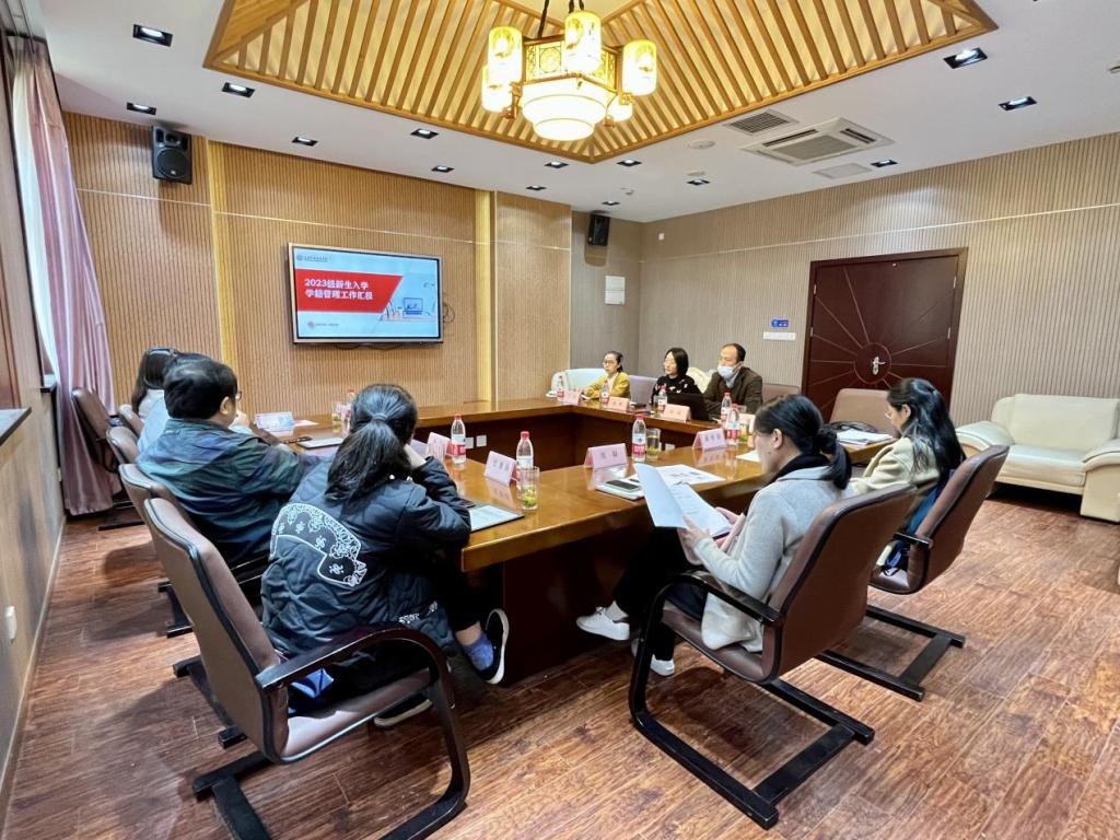 学生处处长孙波对学生事务中心领导、专家一行表示热烈欢迎,并对学生事务中心长期以来对我校学籍工作的指导和支持表示感谢。孙波处长从学校学籍管理制度建设、组织保障情况、新生入学资格审查等方面介绍了学校学籍学历管理工作的相关情况,汇报了2023年秋季新生入学资格审查工作的具体流程、审查结果。汇报后,围绕学籍管理工作在工作开展中遇到的问题和难点,学校相关人员与调研组专家展开了积极讨论。