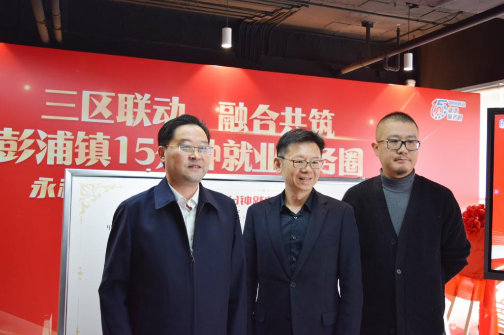 彭浦镇党委副书记、镇长何涛为本次活动致辞,提出了全面服务区域青年就业的要求,并与我校校长黄群、光大安石商业事业部上海区域总经理翟云渊共同签署“三区联动”彭浦镇15分钟就业服务圈合作协议。相关区、镇领导为彭浦镇永和社区就业服务站揭牌。