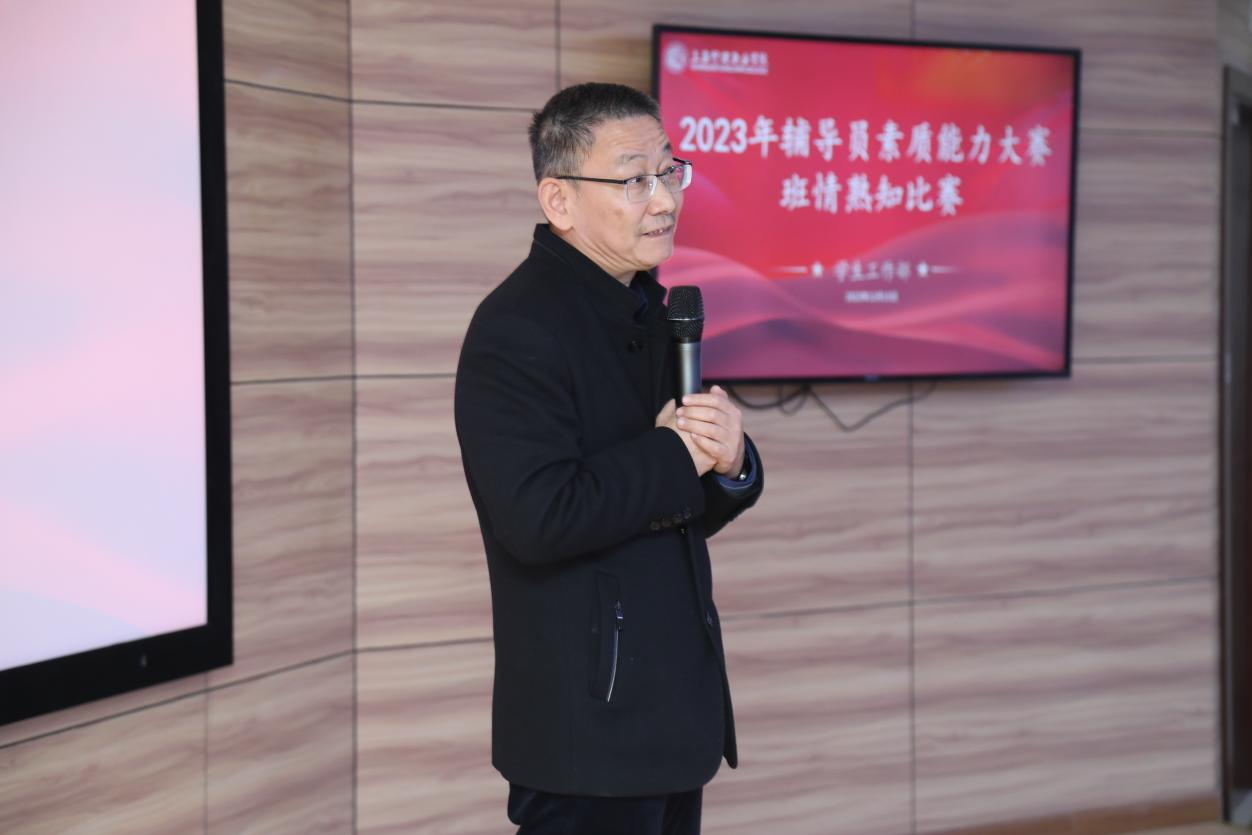 12月15日,学校举行2023年辅导员素质能力大赛之“班情熟识”专场比赛。学校党委副书记李越出席活动,校党政办主任曹娜、宣传部常务副部长任琳琳、科发处处长杜君英、教务处处长公晨、学生工作部部长孙波担任评委,各二级学院党支部书记和全体辅导员现场观摩比赛。